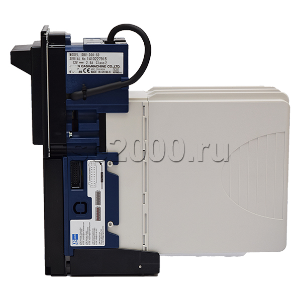 Отличается от других моделей возможностью работы по протоколам MDB, PULSE, ID-003/ Напряжение питания 12 В. Поставляется с кеш боксом 300 купюр (пластик) и оригинальной лицевой панелью (черный пластик и 2 встроенных светодиода)